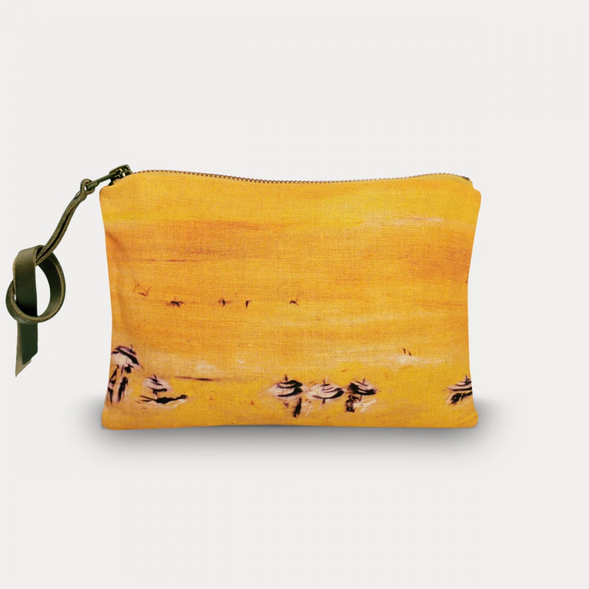 Les pochettes Maison Levy sont créée et fabriquée en France. La Pochette Plage Jaune d’Haby Bonomo est idéale pour ranger tous vos petits trésors.