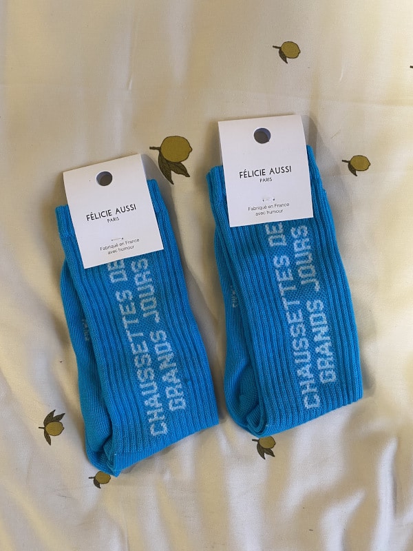 Célébrez les occasions spéciales avec les chaussettes de la marque Félicie Aussi ! Notre modèle bleu pour enfant, avec son message « Grands Jours », est parfait pour les fêtes et les événements importants.