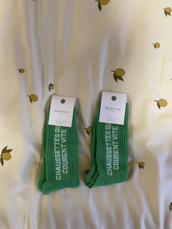 Donnez à vos enfants l’envie de bouger avec les chaussettes de la marque Félicie Aussi ! Notre modèle vert, avec son message « qui Courent Vite », est parfait pour les petits sportifs en herbe.