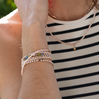 Le Yves Rose Guimauve est une pièce alliant l’élégance des perles de Bohème à la sophistication de l’Hématite Gold et de la Rocaille Africaine. Sa composition en fait un bijou polyvalent en effet il peut être porté en sautoir pour un look chic et raffiné, ou en bracelet enroulé autour du poignet. Il saura sublimer votre tenue avec son éclat.