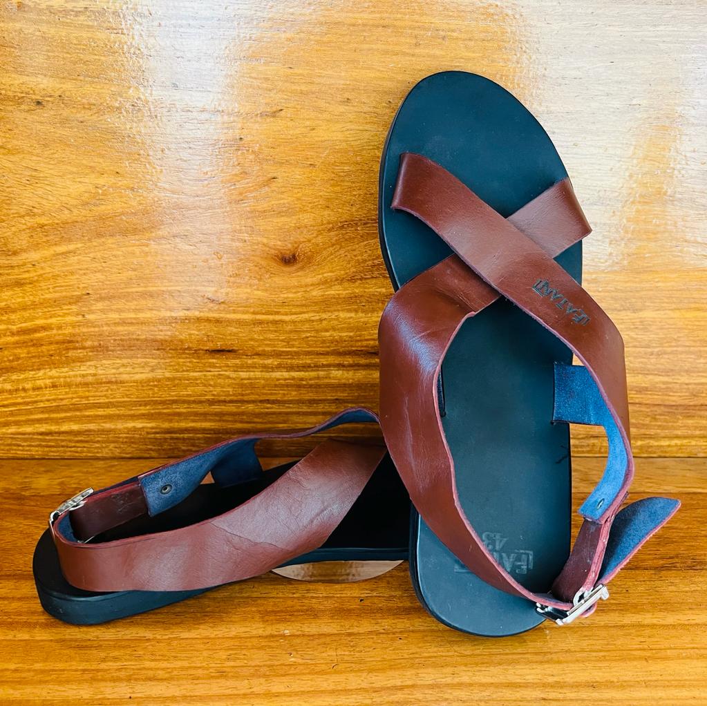 Sandales Artisanales Croisée en Cuir à une Boucle pour Hommes