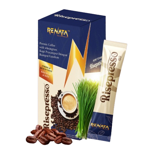 Un mélange unique de suppléments de santé contenant la poudre de café, de la crème non journalière, du sucre brun et de la poudre d’herbe à la santé.