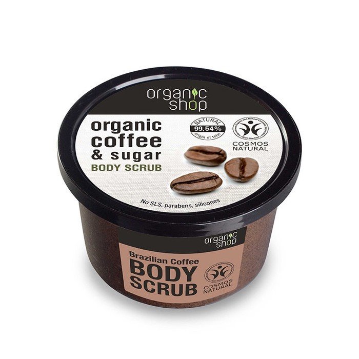 The body scrub is an injection of positive energy in a convenient package. The coffee scrub effectively cleanses the body of impurities and dry epidermis. This makes the skin smooth, soft and really firm. It contains shea butter, cane sugar and organic coffee oil. It is the natural power of the ingredients.In the Organic Shop Natural & Juicy Body Care gift set you will find: nourishing Grapefruit Punch shower gel, cleansing Brazilian coffee body peeling and rejuvenating Vanilla Bourbon body peeling.