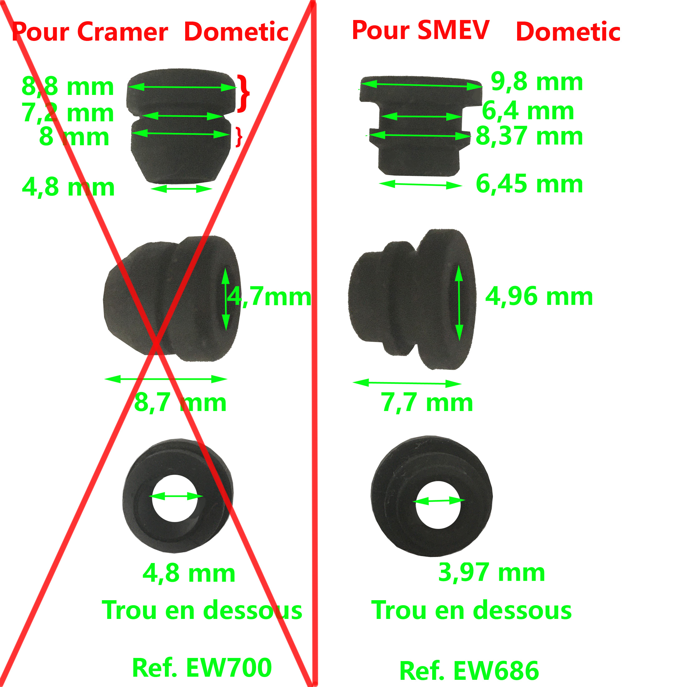 la seul différence avec le bouton gaz (EW409) est la longueur de 2,5 cm et la section très légèrement plus petite de 1mm (l’un ne peut pas remplacer l’autre).