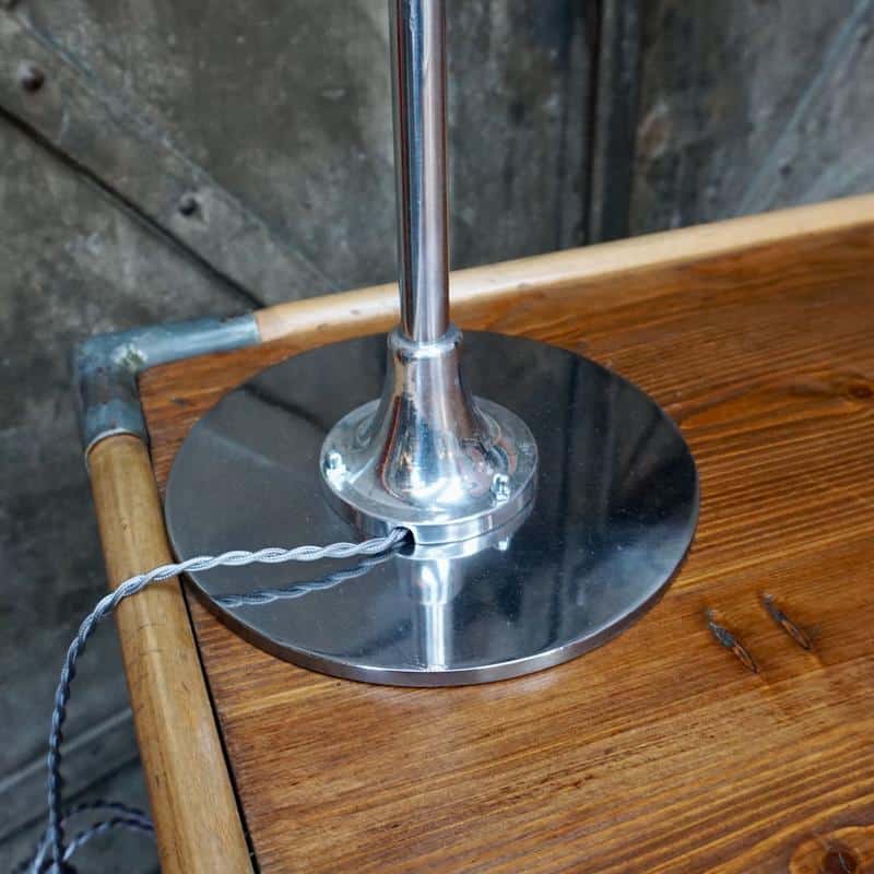 Lampe re-cablée à neuf avec du fil torsadé argenté à l’ancienne.