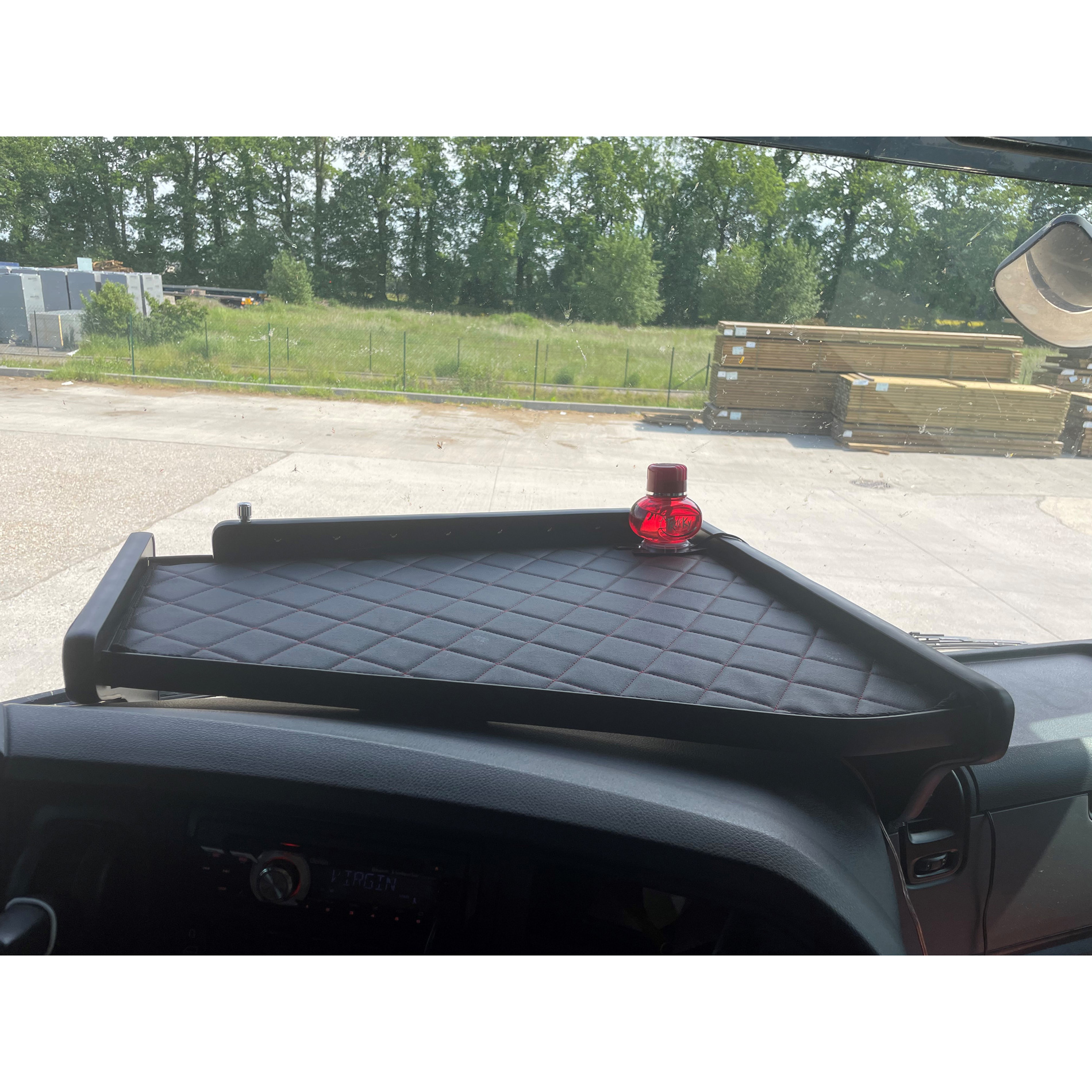 Tablette centrale Scania série R avec led couverte en éco cuir, (de sept 2010 à 2016), inférieur – FABRIQUE SUR MESURE – DELAIS ENVIRON 4-5 SEMAINES