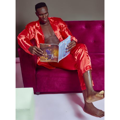 Pyjama CHOCOLAT Ensemble 2 pièces en Satin-Soie Rouge Passion Homme
